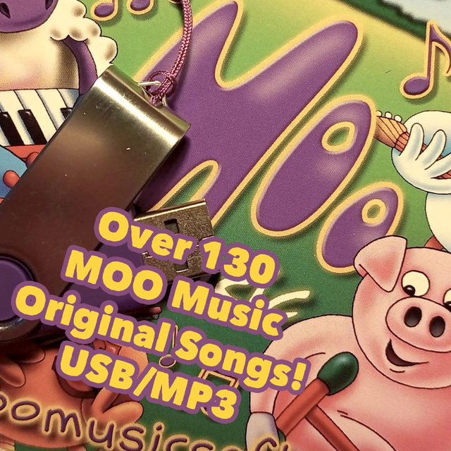 A USB containing over 130 original MOO Music Songs. Perfect for home or car play on the go. All songs are MP3 format.